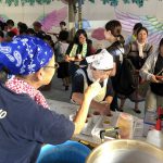 10数種類の模擬店や、多彩なゲームコーナーが楽しめる「ふれあい広場」は、20年以上続く恒例行事。多い時で、一日の模擬店利用数が500人を超え、会場は多くの人で賑わう。そんな「ふれあい広場」は、主に食材の品質と在庫を管理する「食材チーム」と、完璧な衛生管理を行う「管理チーム」、そして調理と接待を担当する「特別ひのきしん者」の手によって安全に運営されている。